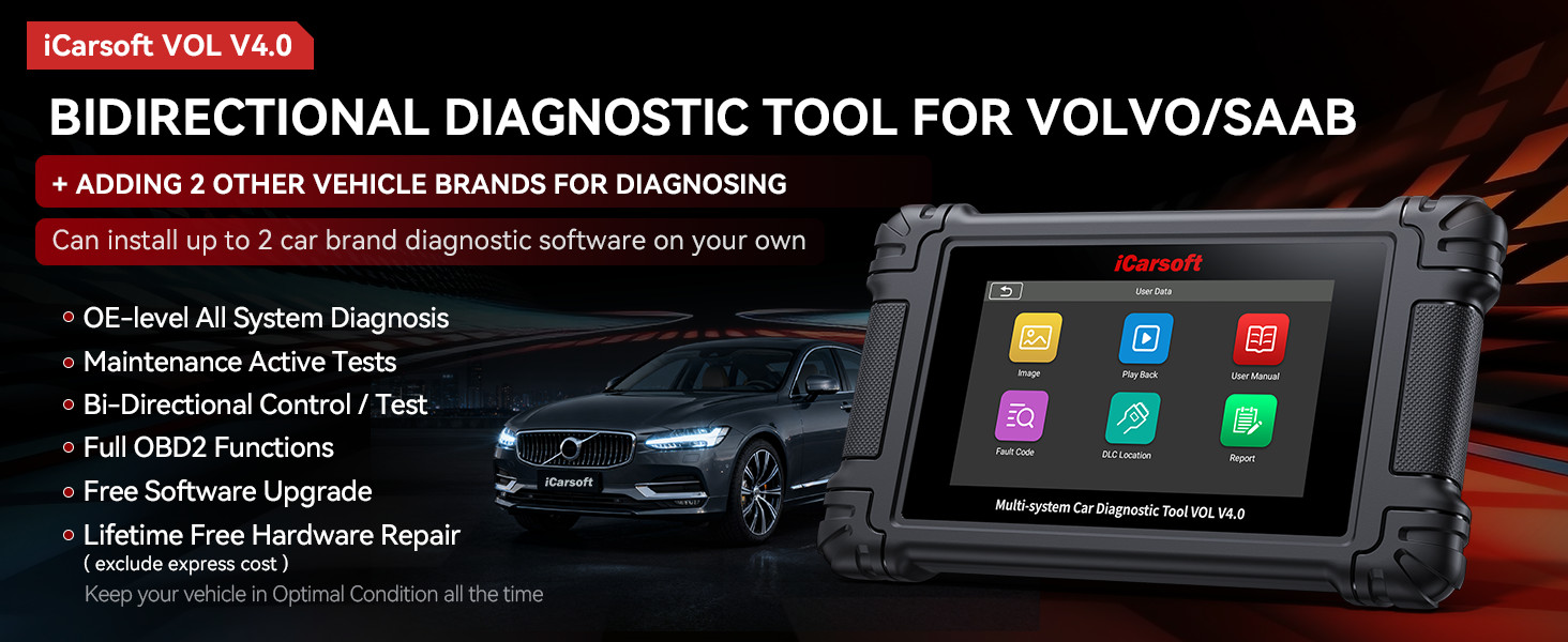 The iCarsoft VOL V4.0 is built for deeper Volvo and Saab coverage than basic OBD readers. It supports multi-system diagnostics across supported ECUs, plus service functions, live data and bi-directional control (active tests) where supported.
