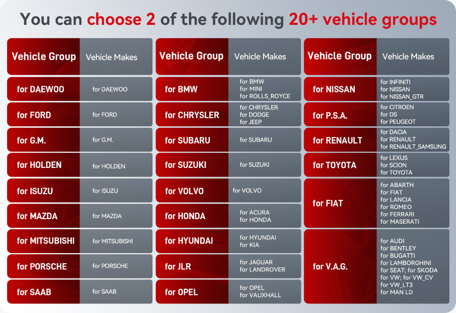 - Ideal if you have more than one vehicle or work on multiple makes