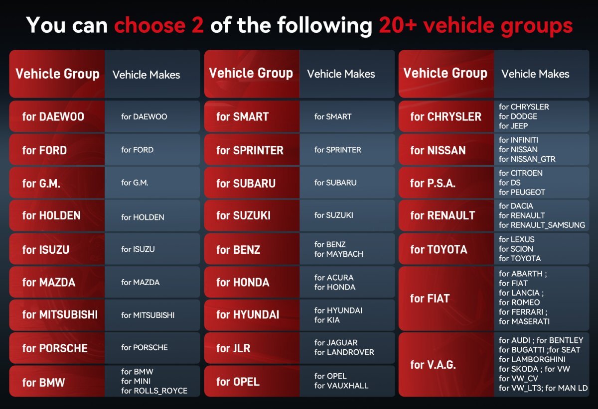 You add extra makes through the iCarsoft update / download area on the device after connecting to Wi-Fi. If you share your vehicles before purchase, HIDS-DIRECT can help you choose suitable add-on makes.